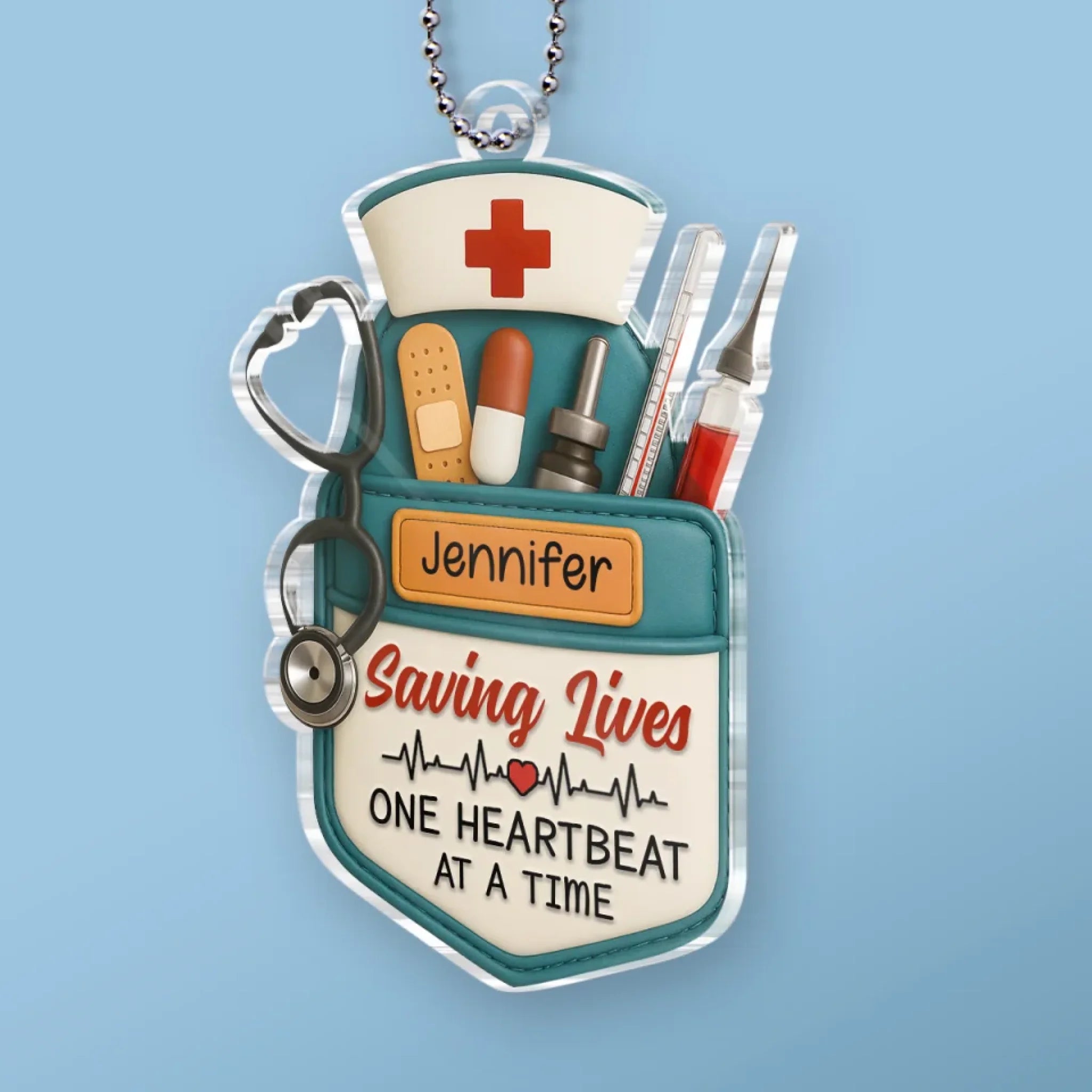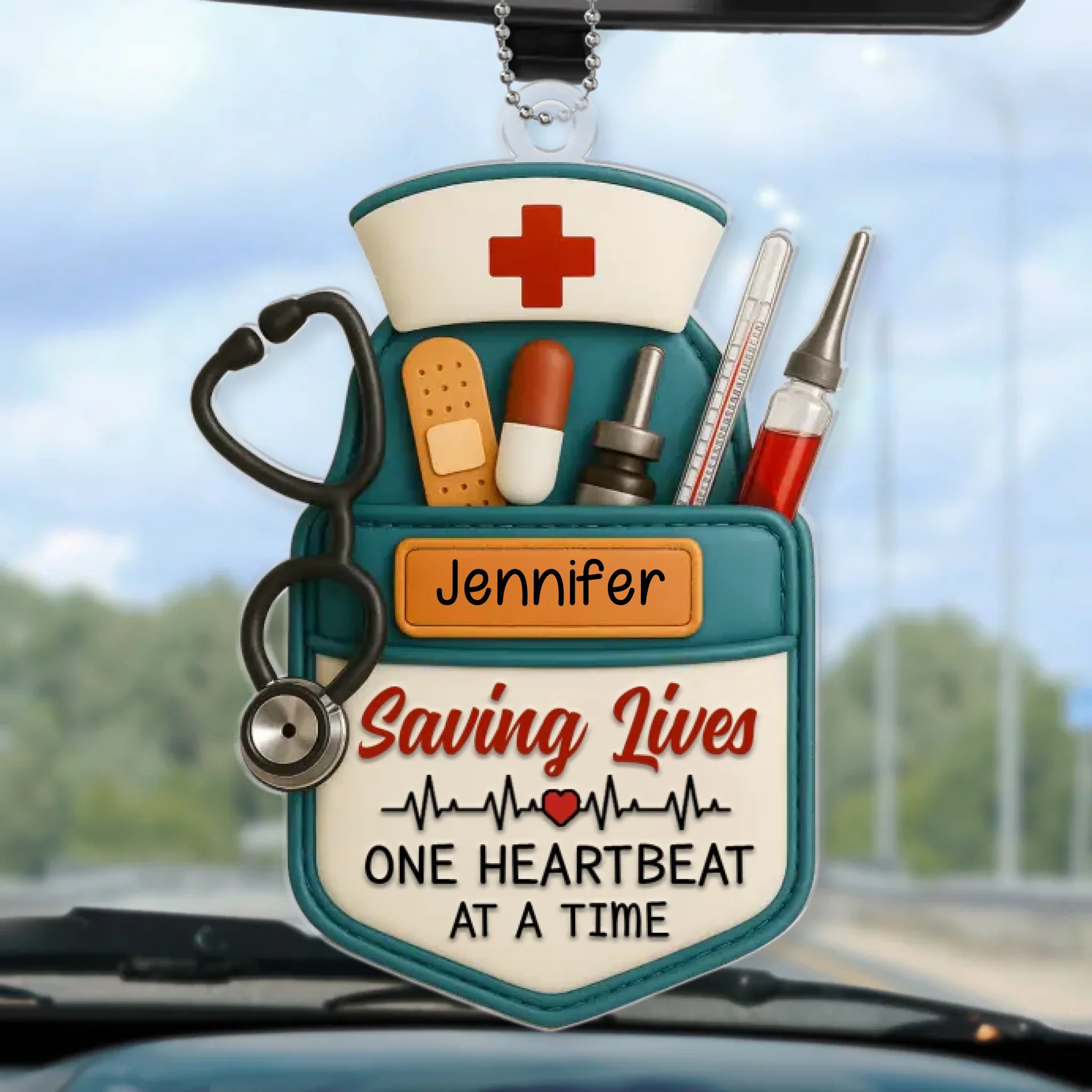 Saving Lives One Heartbeat At A Time - Nurse Personalized Custom Car Ornament - Acrylic Custom Shaped - Appreciation, Thank You Gift, Nurse Life, Doctor Life