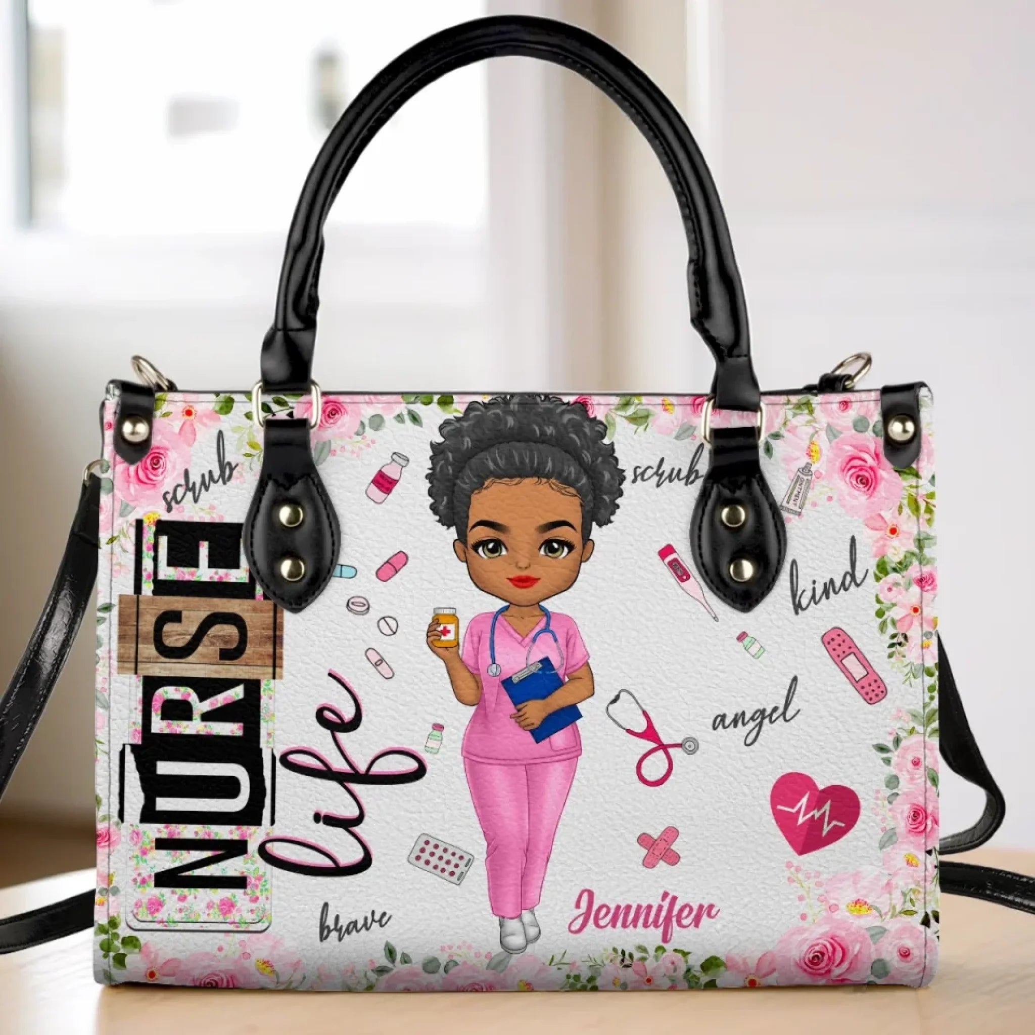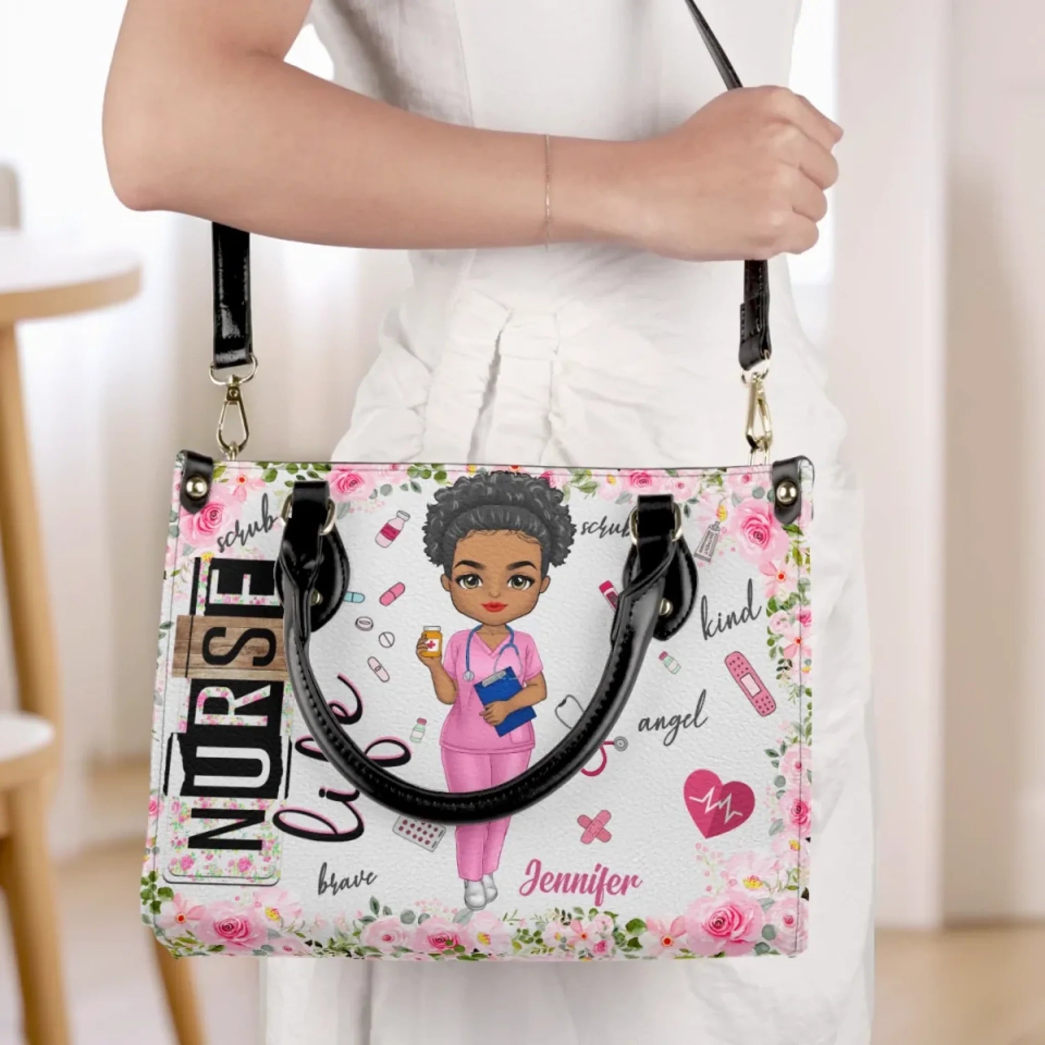 Sweet As Roses, Strong As Steel - Nurse Personalized Custom Leather Handbag - Appreciation, Thank You Gift, Nurse Life, Doctor Life