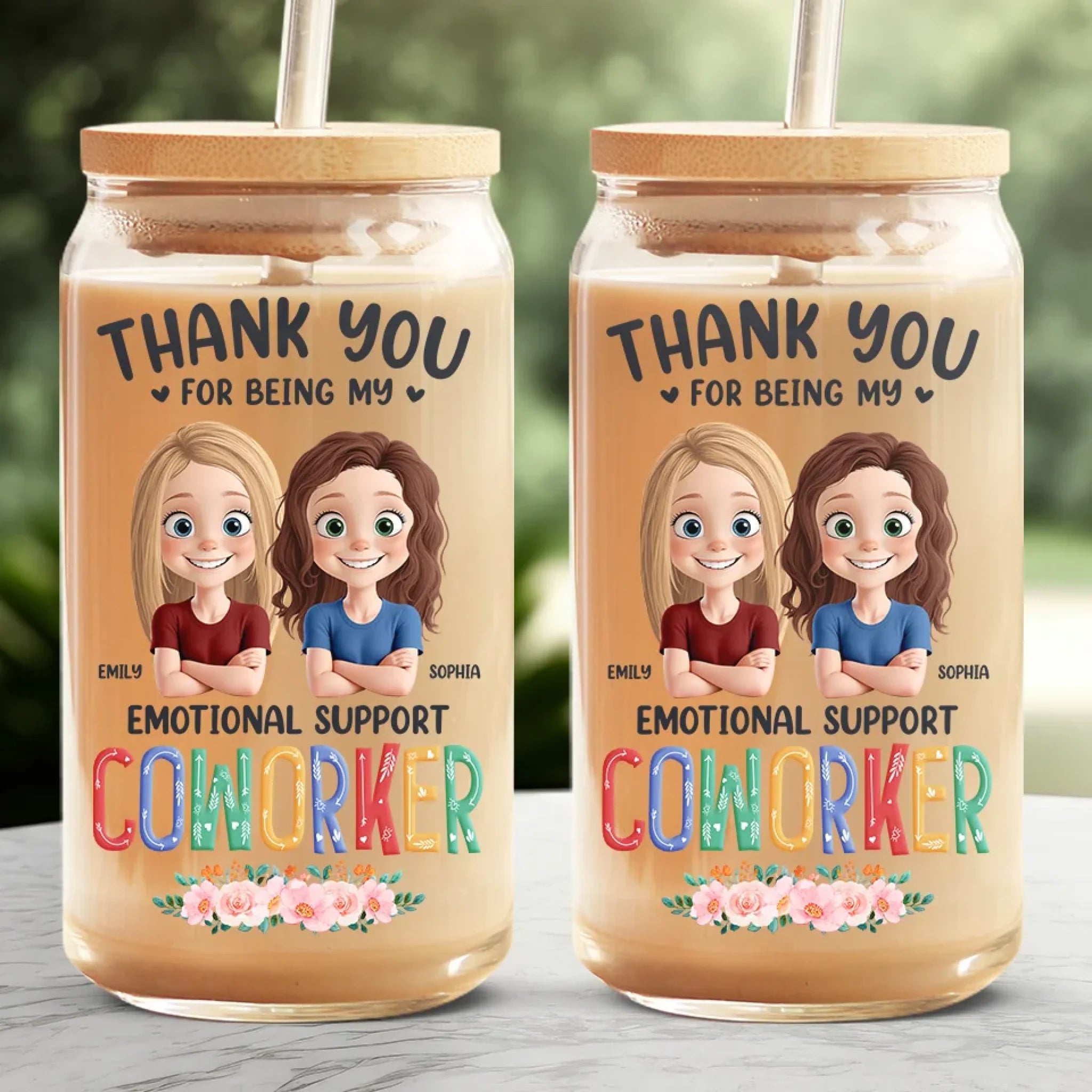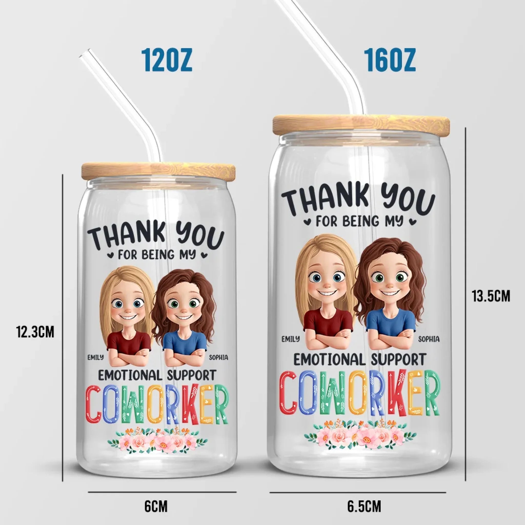 Thank You For Being My Emotional Supporter - Coworker Personalized Custom Glass Cup, Iced Coffee Cup - Gift For Coworkers, Work Friends, Colleagues