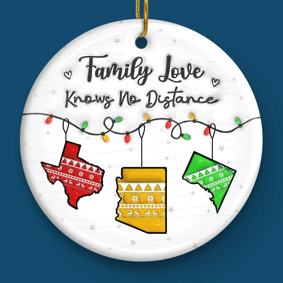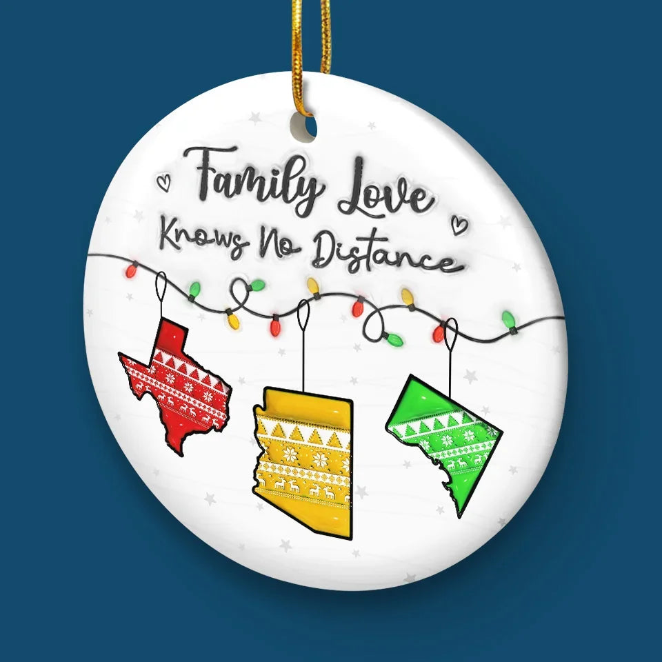 Long Distance Together Forever, Never Truly Apart - Family Personalized Custom Ornament - Ceramic Round Shaped - Christmas Gift For Family Members