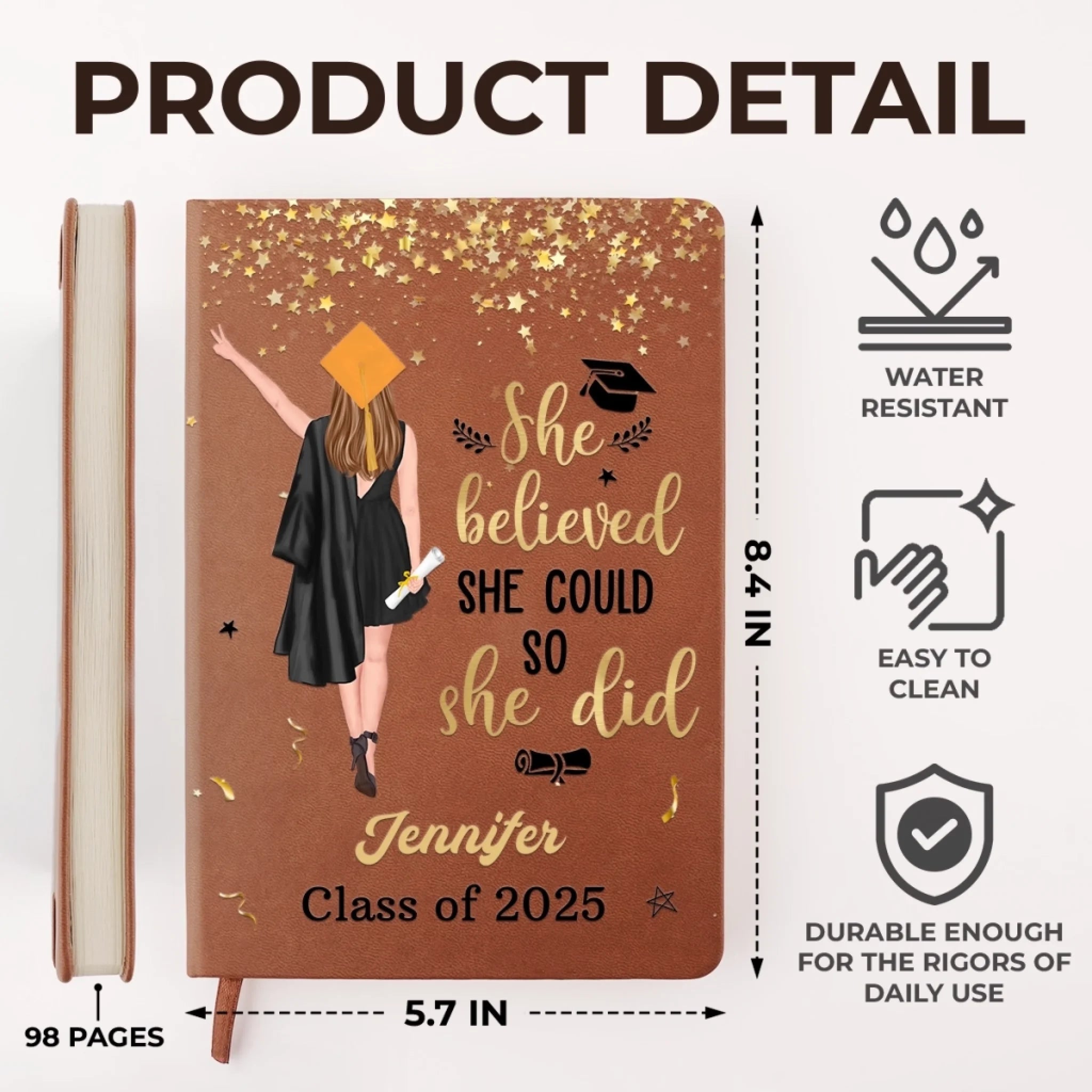 Crafted from high-quality PU leather, this journal is smooth, durable, water-resistant, and easy to clean.