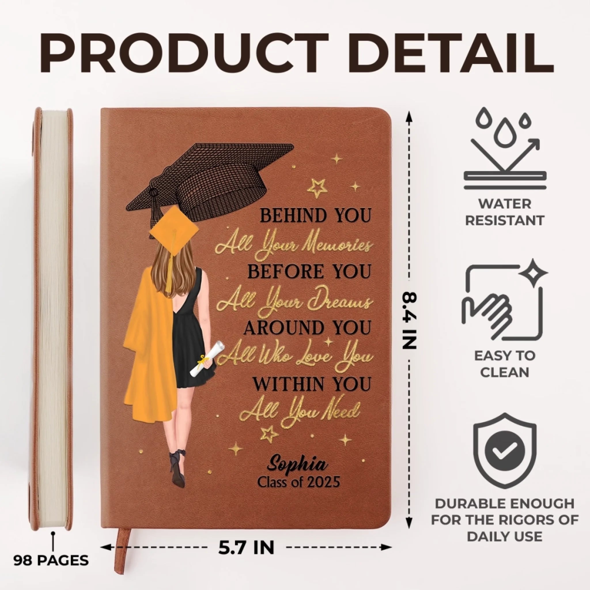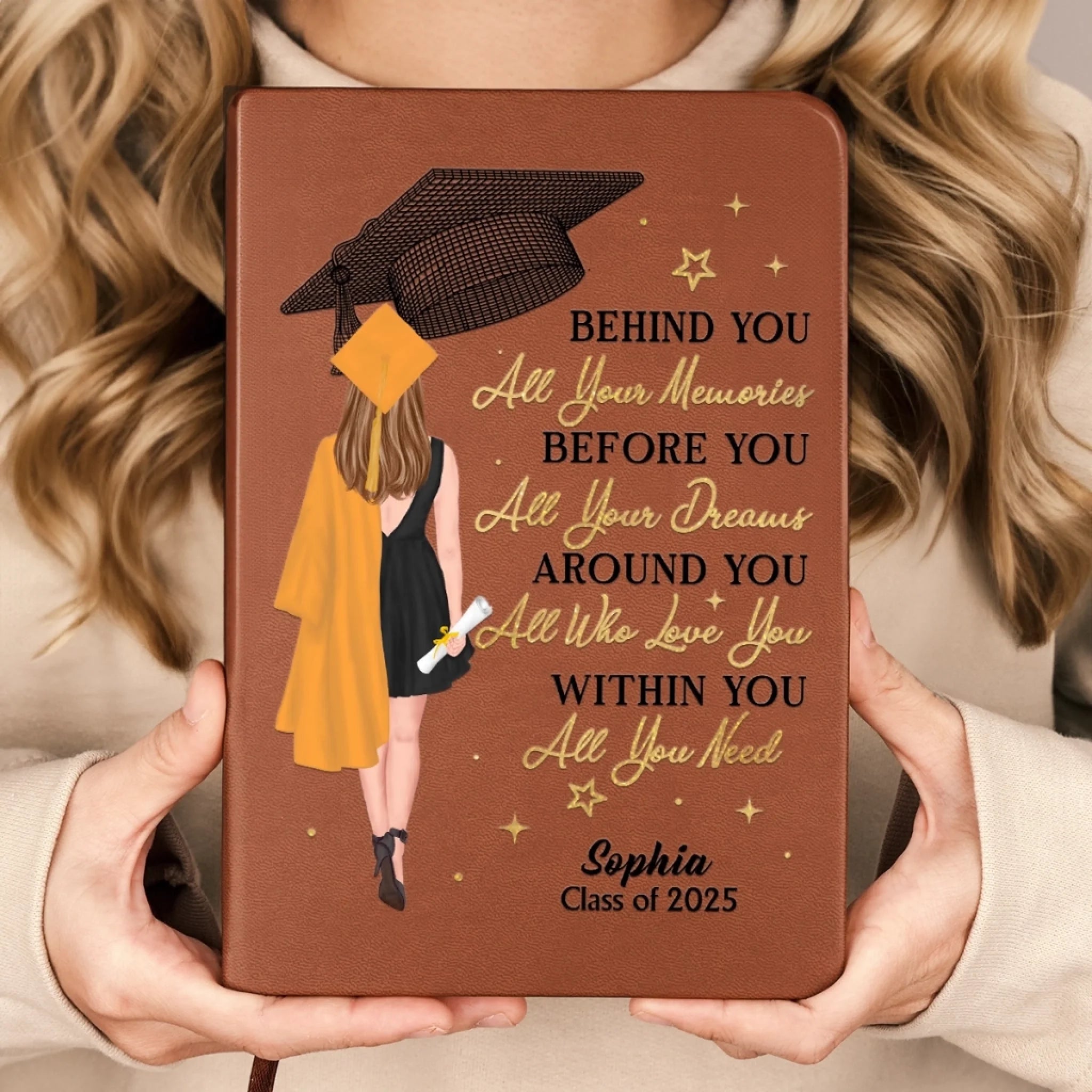 Wearing Success, One Step At A Time - Family Personalized Custom Leather Journal - Graduation Gift For Family Members, Siblings, Brothers, Sisters, Best Friends
