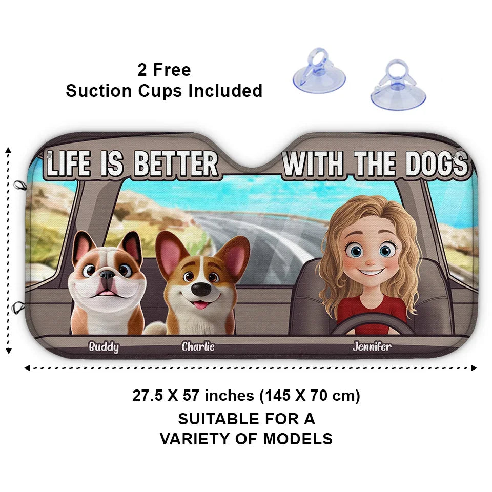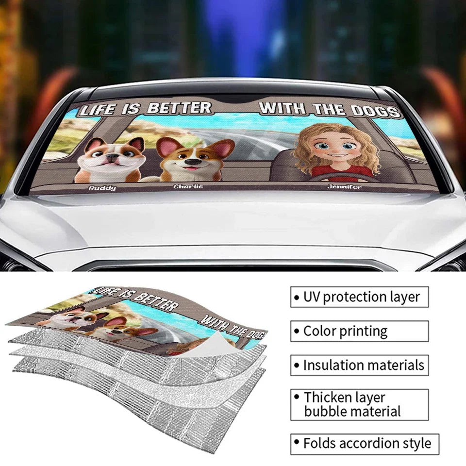 Wherever Our Fur Mom Goes, We’re Always Along For The Ride - Dog Personalized Custom Auto Windshield Sunshade, Car Window Protector - Gift For Pet Owners, Pet Lovers