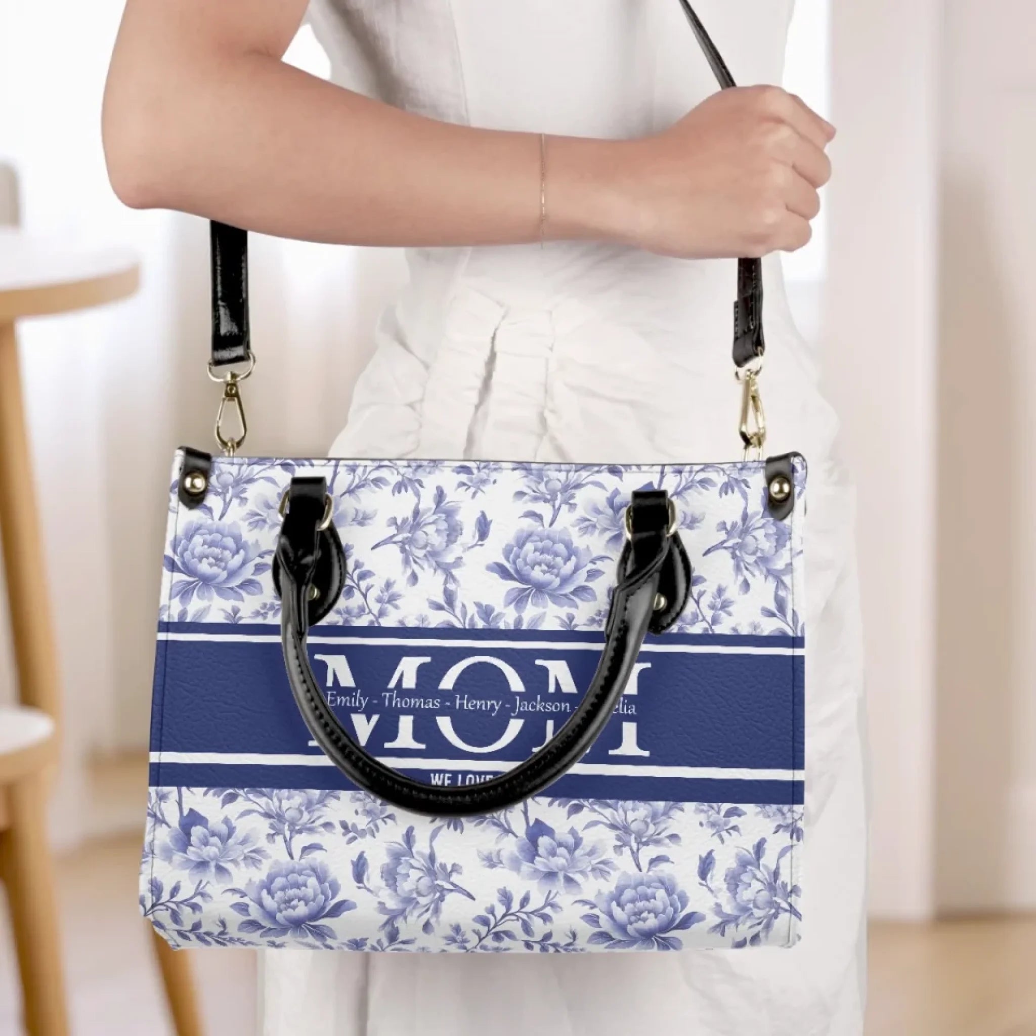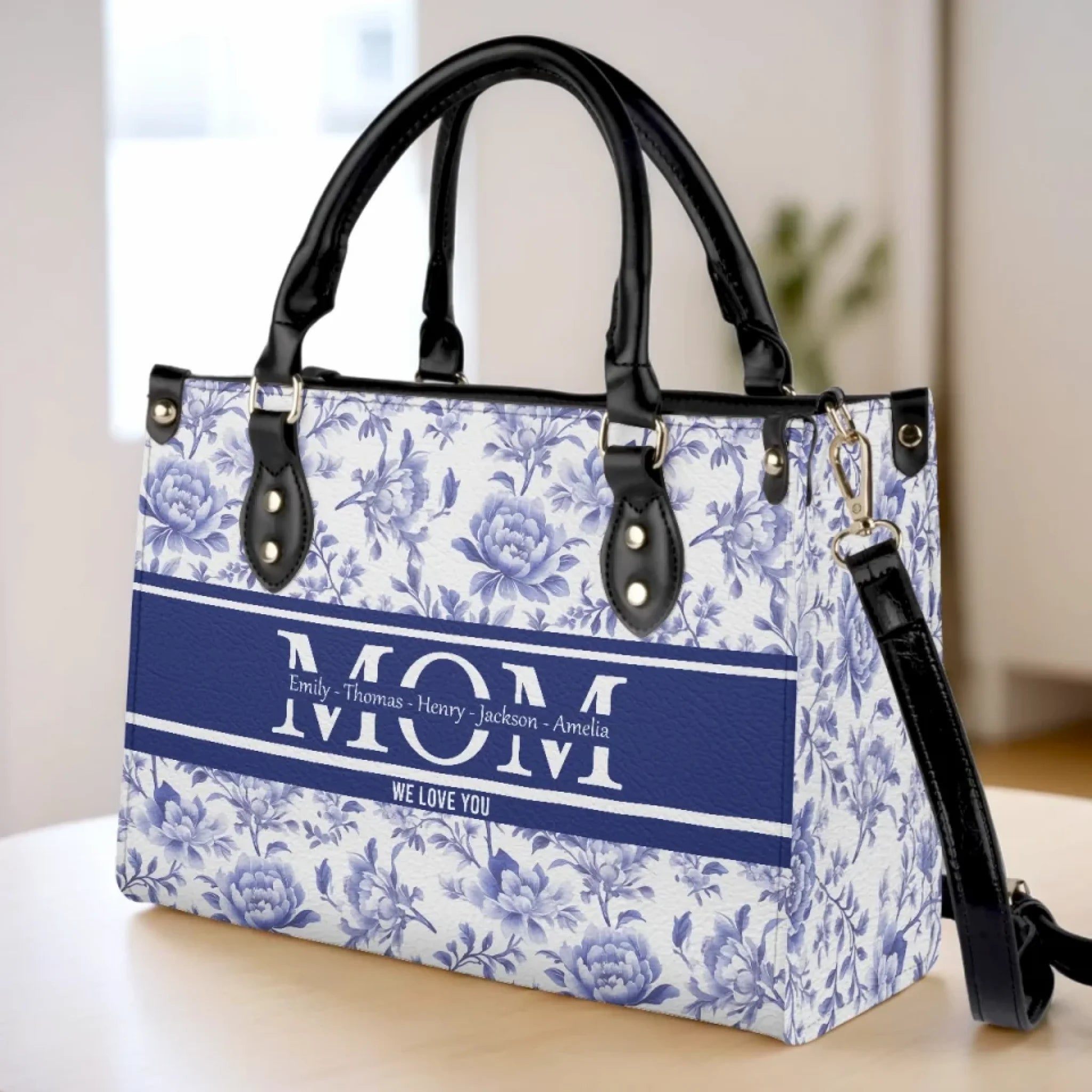 With Every Heartbeat, You're Surrounded By Love - Family Personalized Custom Leather Handbag - Mother's Day, Gift For Mom, Grandma