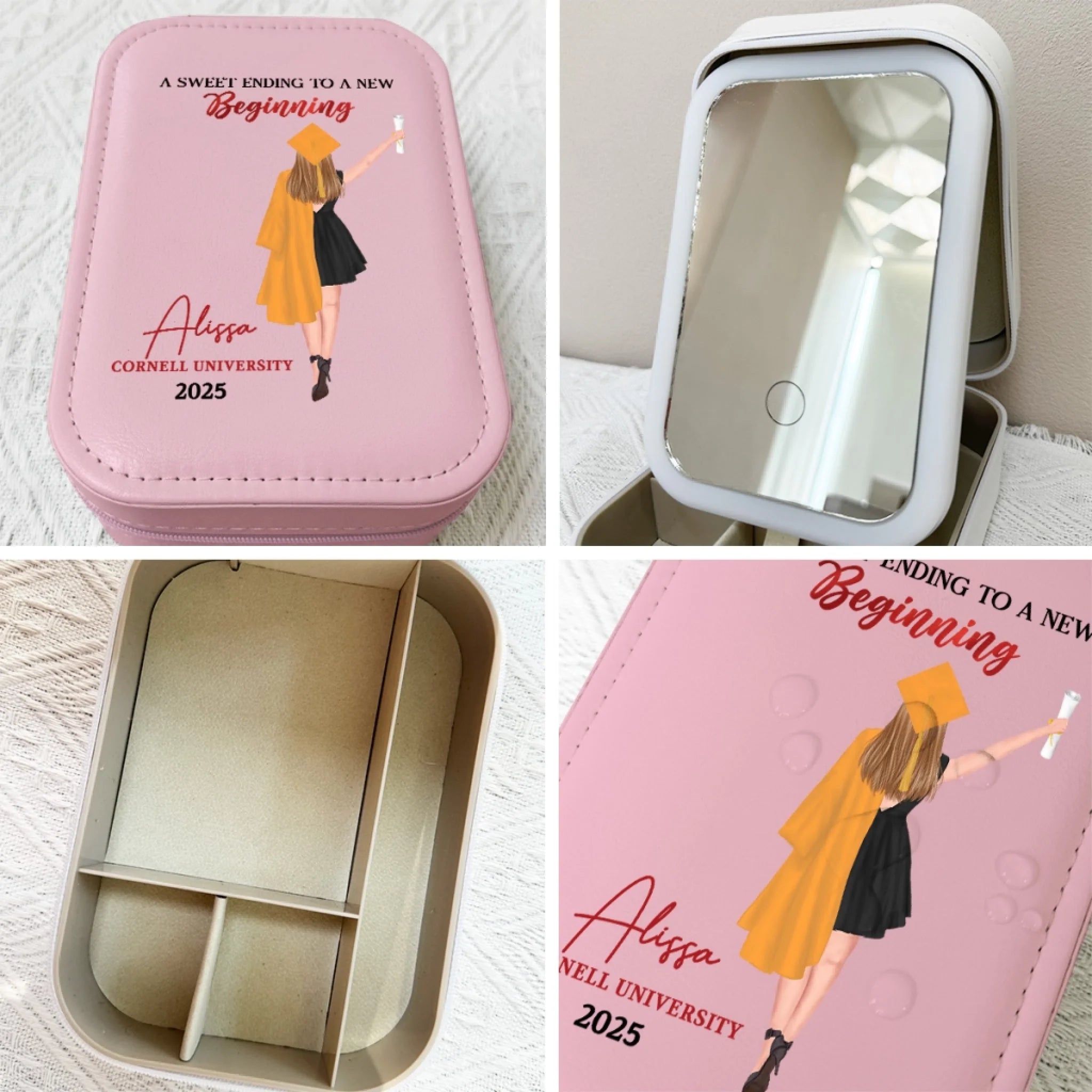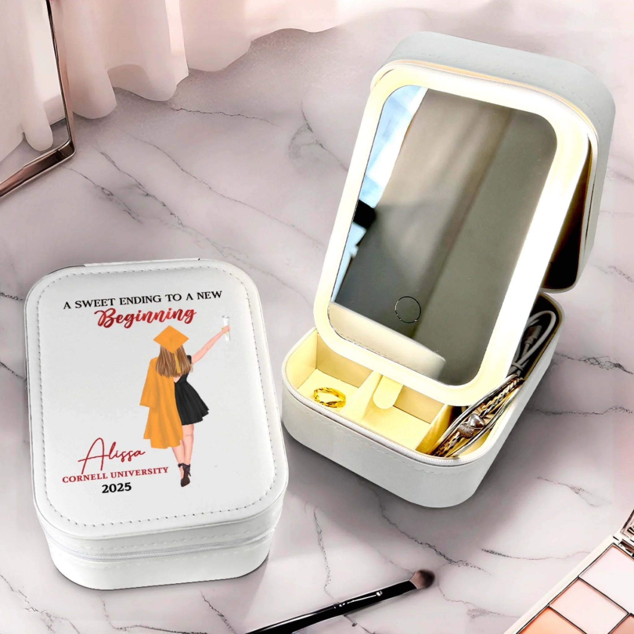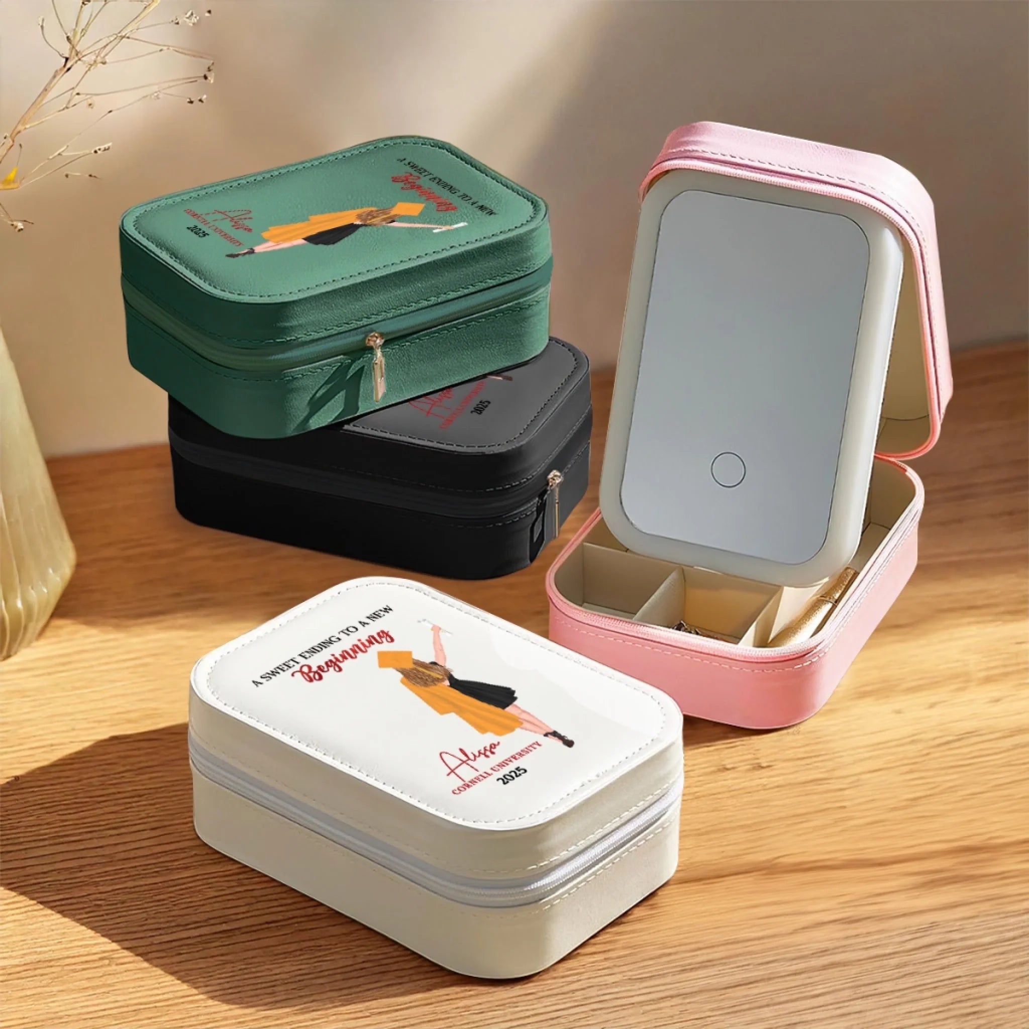 The LED light ensures easy makeup application anytime, while separate compartments keep rings, earrings, necklaces, and beauty essentials neatly organized.