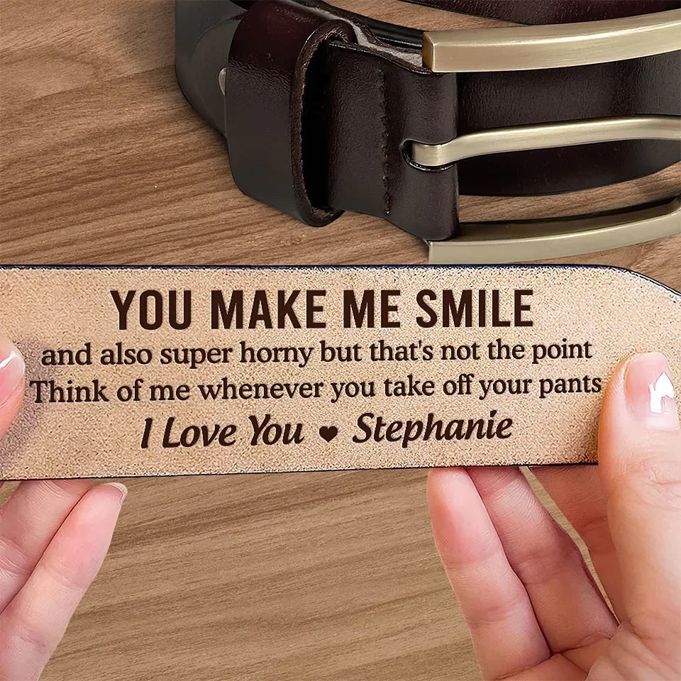 You Make Me Smile - Couple Personalized Custom Engraved Leather Belt - Gift For Husband Wife, Anniversary