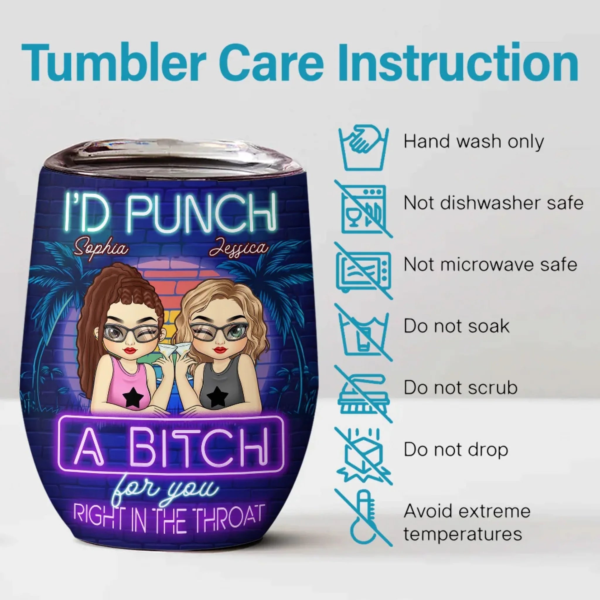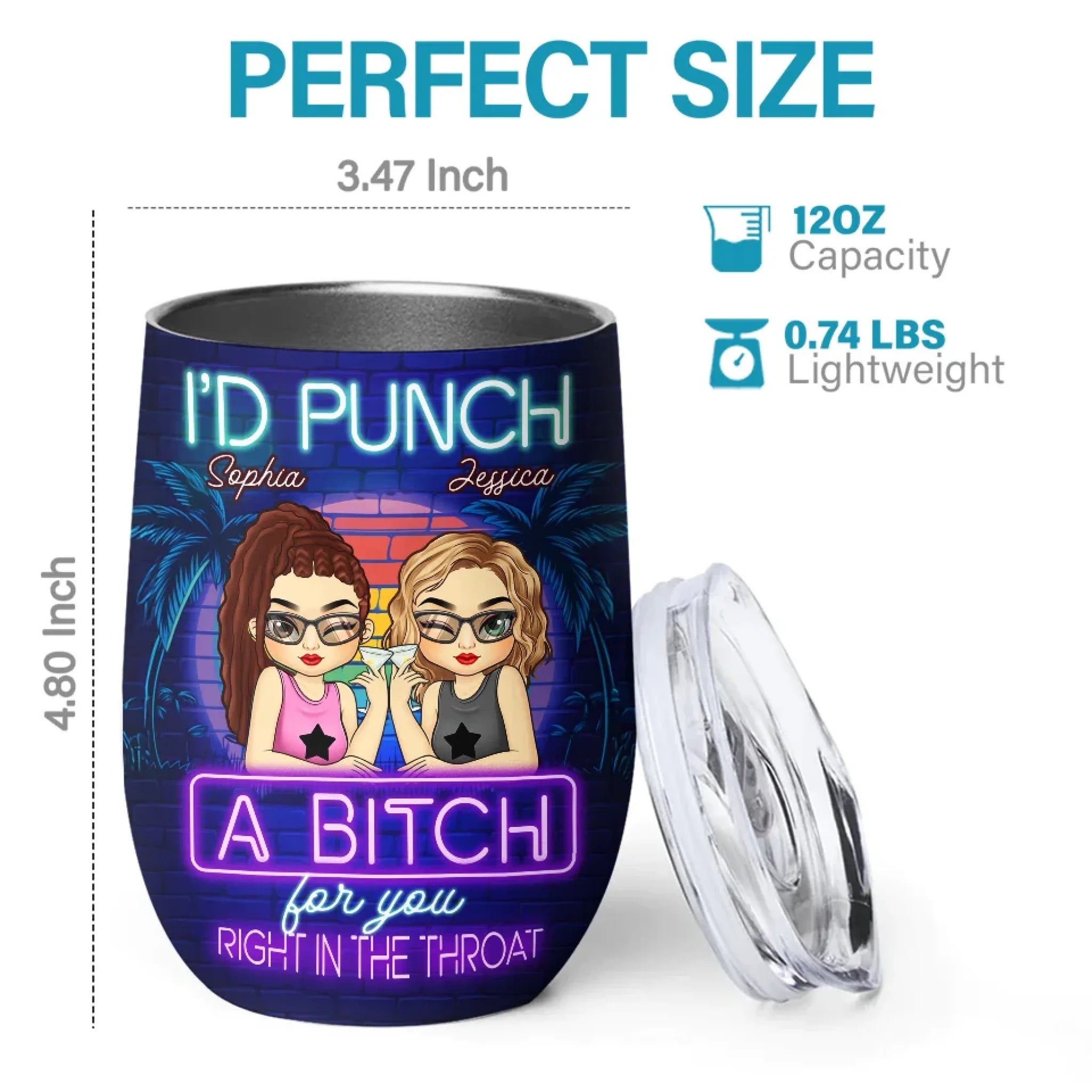If you're looking for a way to express yourself, here is the place to be. This wine tumbler is double insulated and features a see-through plastic lid with a hole for easy sipping. This makes for a fashionable beverage holder that can accommodate almost any artwork, message, or design. It can hold up to 12 ounces. This wine tumbler works well with both hot and cold drinks.