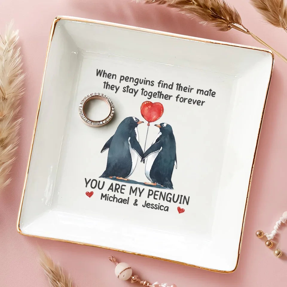 You're My Penguin - Couple Personalized Custom Jewelry Dish - Gift For Husband Wife, Anniversary